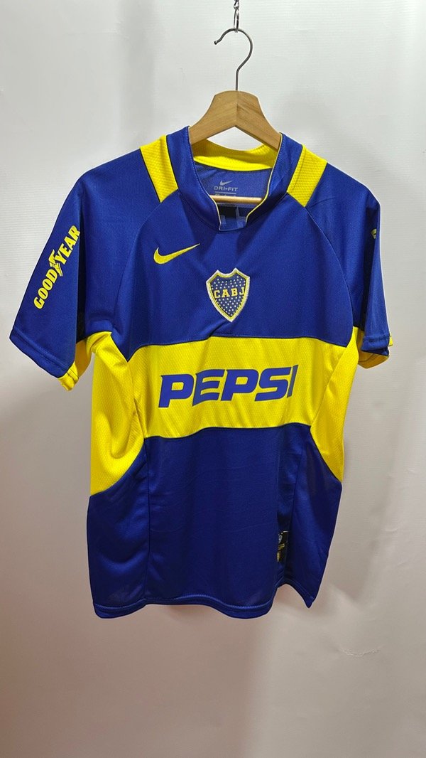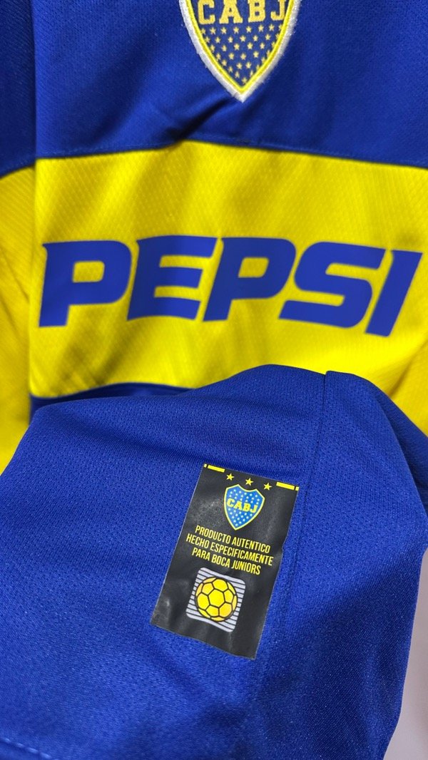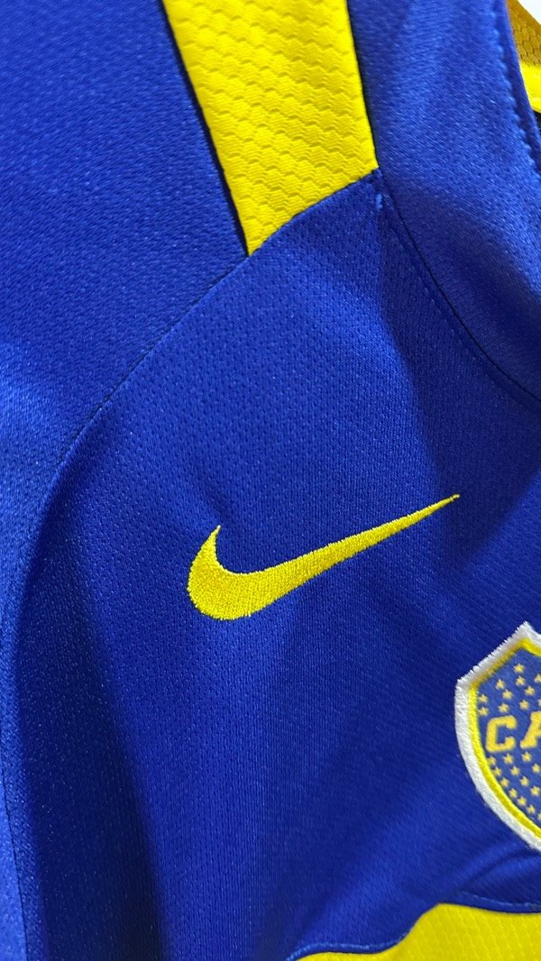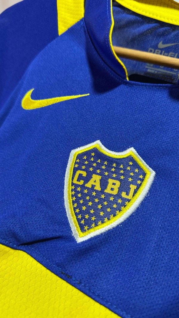 Camiseta de Boca Juniora titular, temporada 2003/2004. Con la numero 9 en el dorsal de Martin Palermo. Con escudo y marca bordados. Estampados en vinilo. Corte y confección idéntico al original. Full premium.