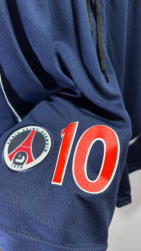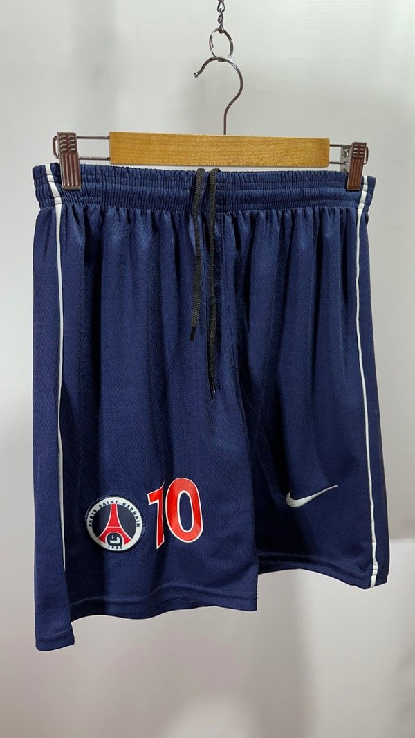 Short del Paris Saint Germain, temporada 2001/2002. Con escudo y marca bordados . Estampados en vinilo . Con cordones ajustable a la cintura. Corte y confección idéntico al original.