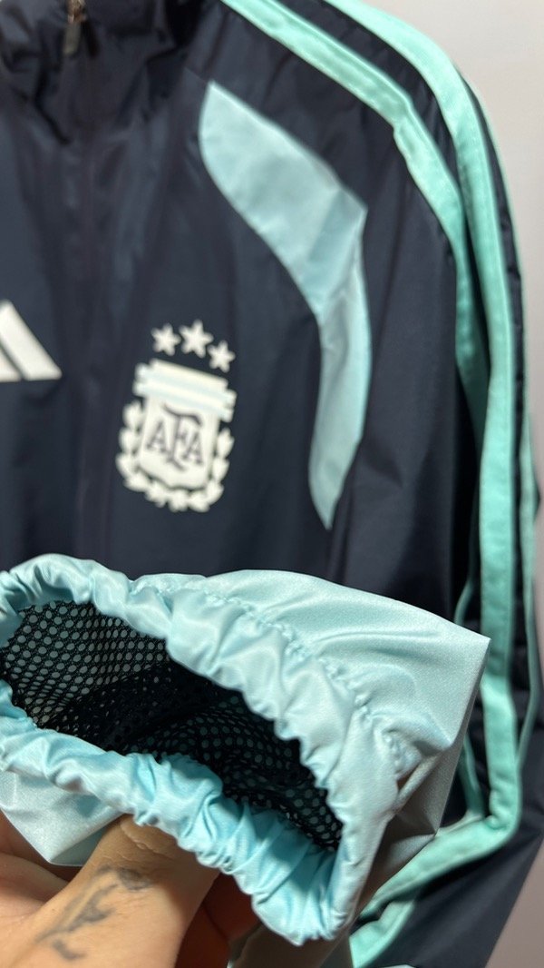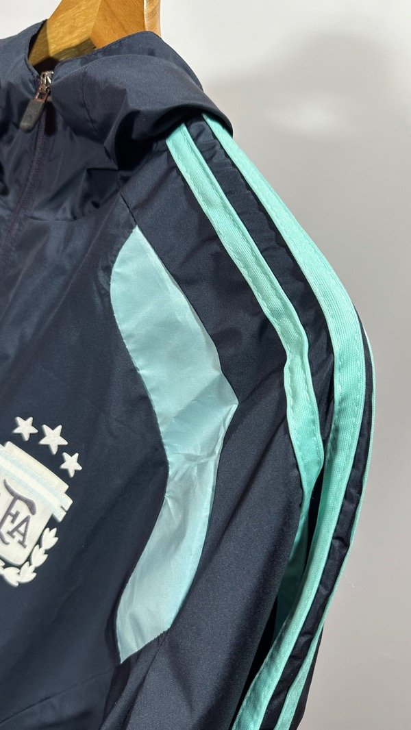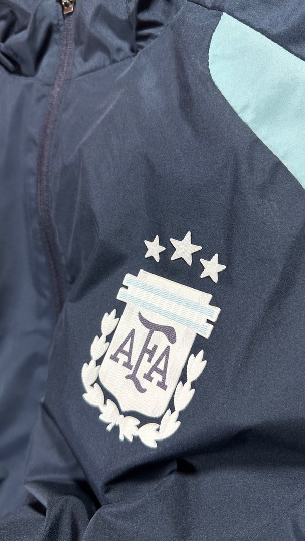 Campera de la Selección Argentina AFA Adidas Tiro 26 Al Weather color Azul Marino. Rompeviento . Con escudo de AFA y marca Adidas termosellados y engomados . Campera con capucha. Bolsillos con cierres rígidos . Con fondo interno. Corte y confección idéntico.