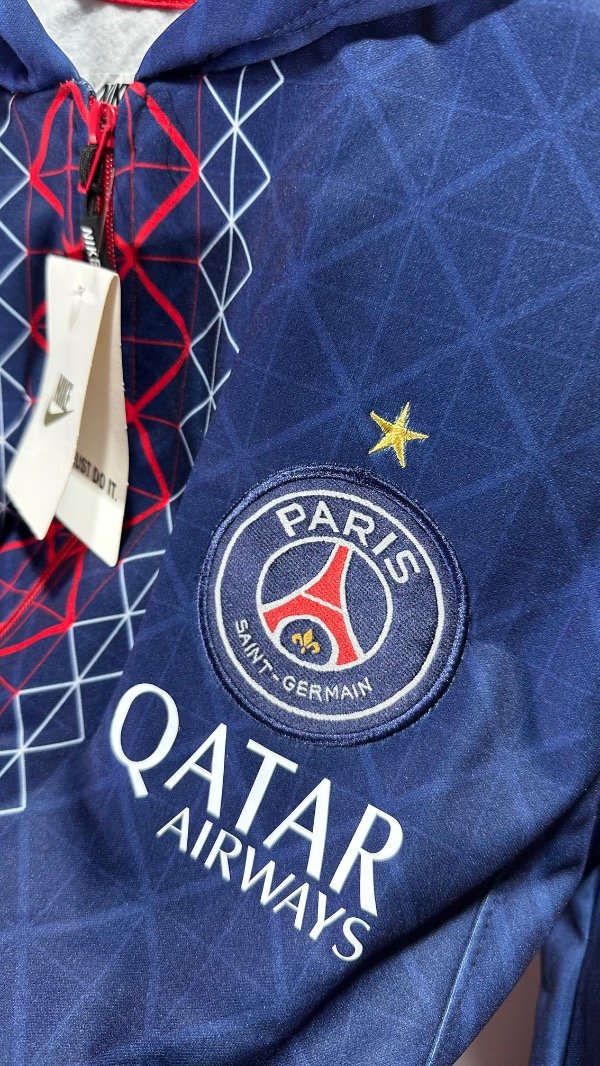 Campera del Paris Saint Germain con capucha ! Calidad premium. Con escudo del PSG y marca Nike bordados . Estampados en vinilo. Bolsillos sin cierres. Cierre de campera rígido. Con capucha. Súper abrigada ! Para aprovechar esta temporada Otoño/Invierno 2026!