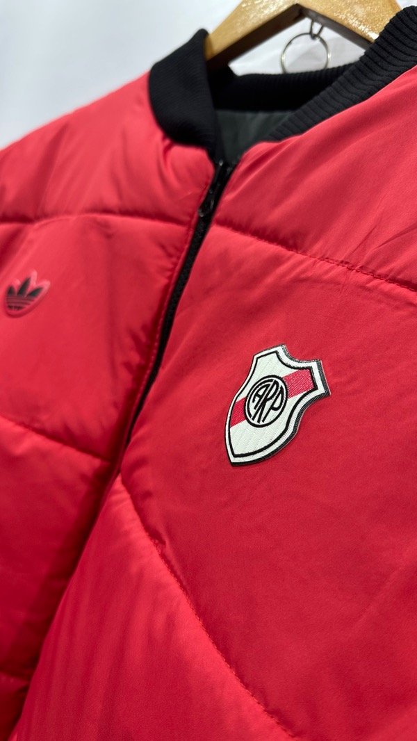 Campera de River Plate Adidas Icons Terrace reversible. Esta campera tiene un acolchado ligero para mantenerte cálido, y un diseño reversible que te ofrece dos formas de representar al millonario. Lo lleves como lo lleves, el logo del Trifolio termosellados de adidas y el escudo de River demuestran tu estilo deportivo y tu pasión por el fútbol. Bolsillos y campera con cierres rígidos. Importada