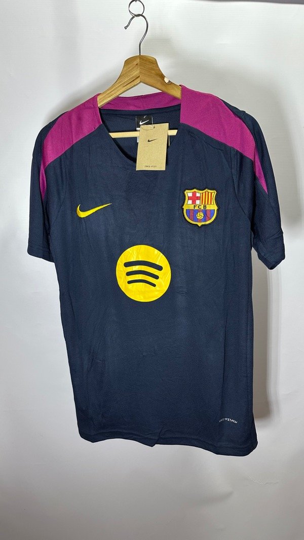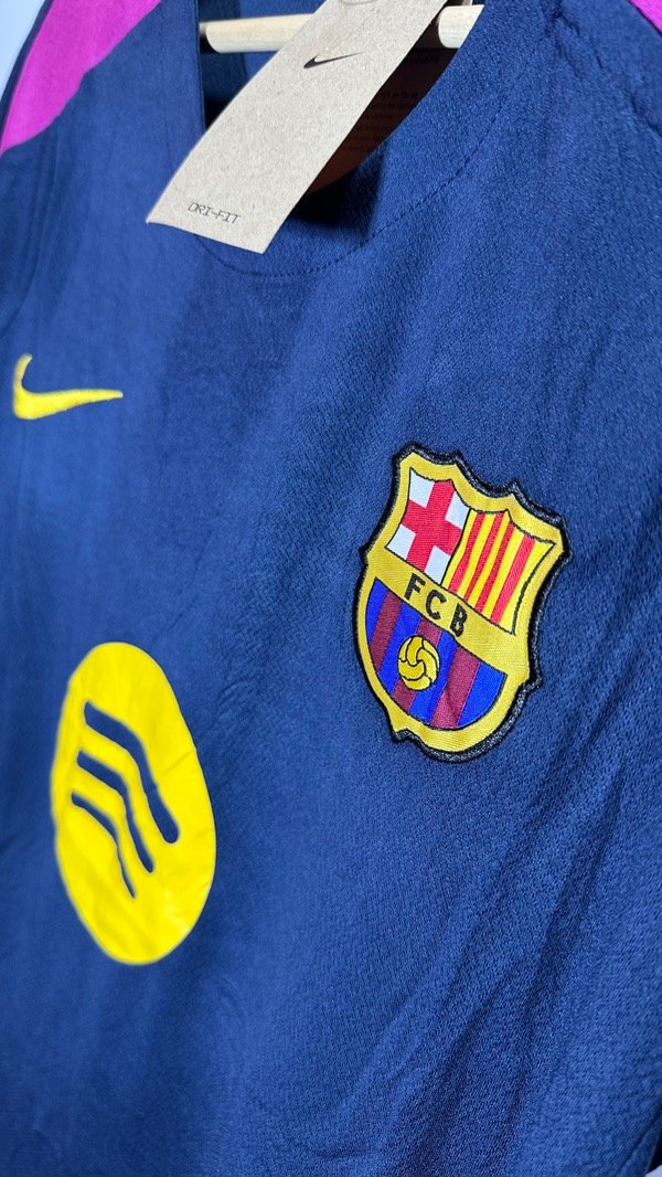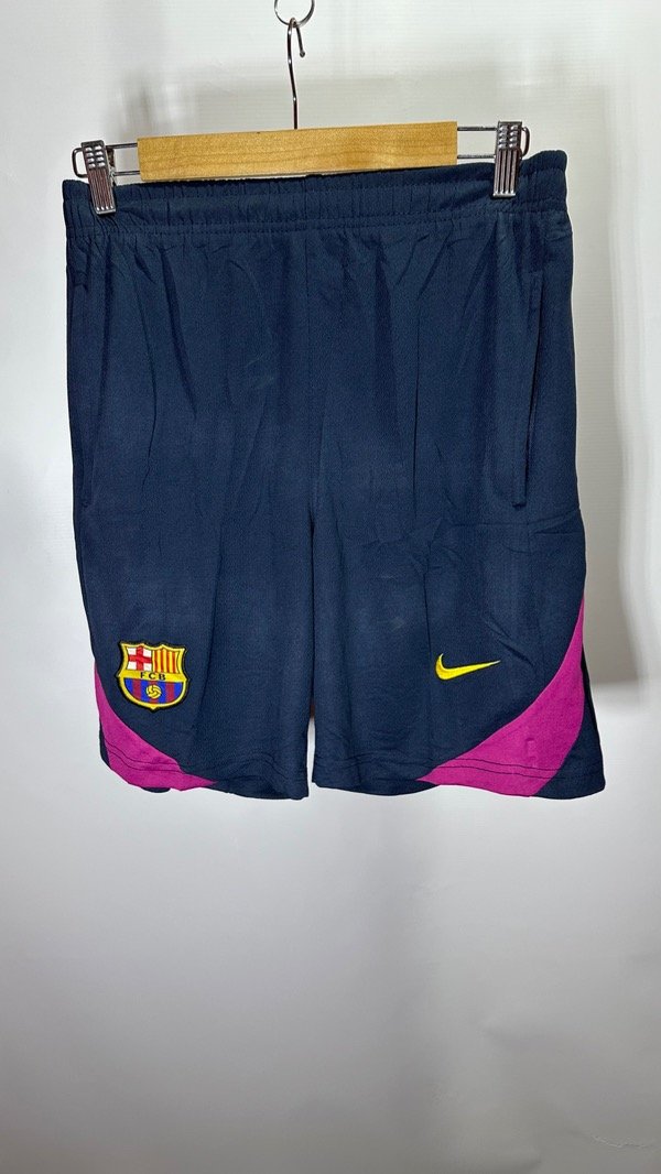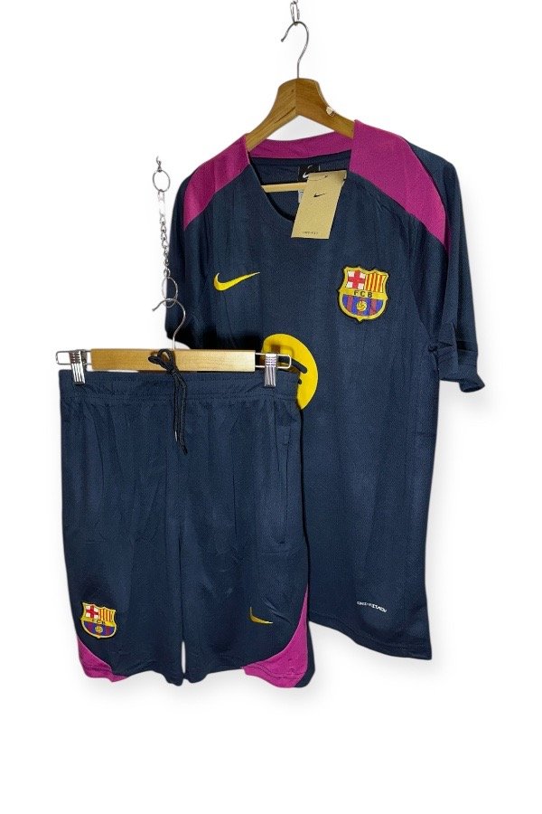Conjunto del FC Barcelona Nike Strike de entrenamiento Temporada 2025. Importado. Con escudo y marca bordados de la mejor calidad. Con etiqueta Nike con sus respectivos talles. Short con cierres rígidos y cordones ajustable a la cintura. Para aprovechar esta primavera/verano y salir con todo el estilo a la calle.