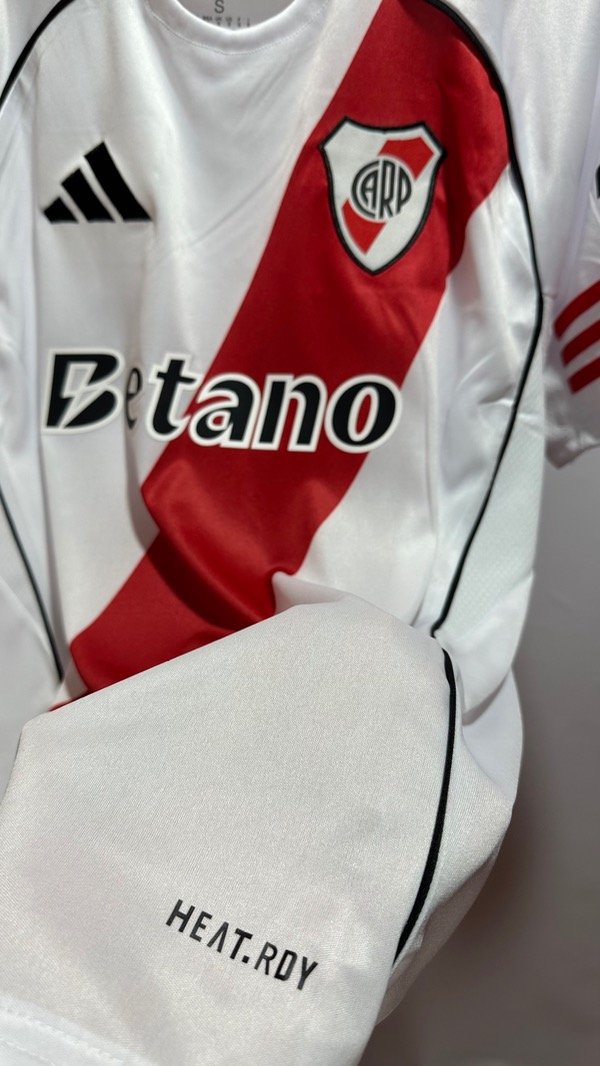 Camiseta de River Plate Titular, temporada 2025/2026. Con la número 10 en el dorsal del Colombiano Juan Fernando Quintero. Con escudo de River y marca Adidas bordados . Estampados en vinilo. Corte y confección idéntico al original. Full premium.