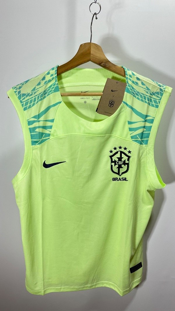 Conjunto Brasil de Entrenamiento, temporada 2023/2024 Importado. Musculosa y Short. Con escudo de Brasil y marca bordados Nike bordados de la mejor calidad en tela G5 Importada . Con etiqueta Nike con sus respectivos talles . Short con cordones ajustable a la cintura y bolsillo con cierres. Corte y confección idéntico .