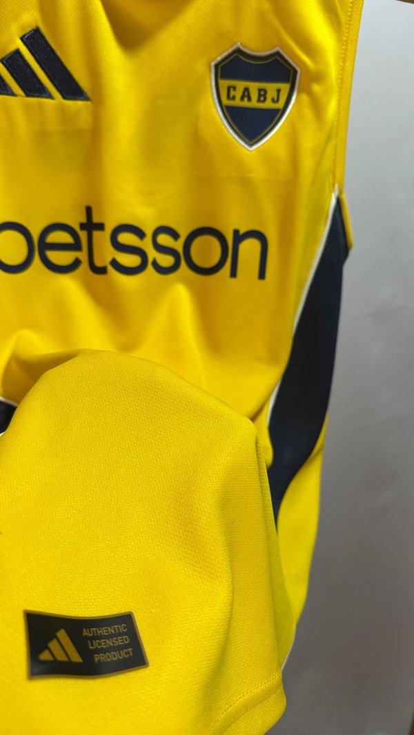 Musculosa de Boca Juniors temporada 2025/2026 color amarillo. Con escudo y marca bordados, marca Betsson y DIRECTV en el dorsal estampados en vinilo. Corte y confección idéntica a la original. Full premium