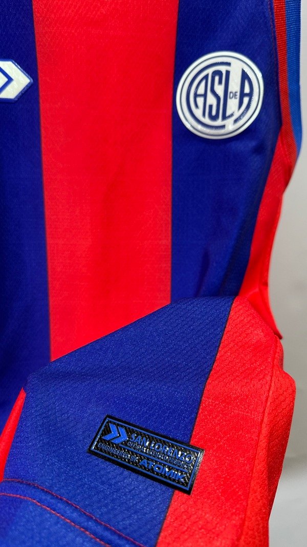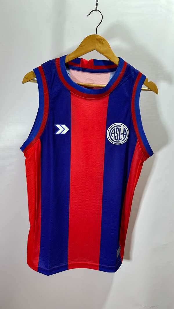 Musculosa de San Lorenzo de Almagro titular Atomik de Básquet, temporada 2025/2026. Con escudo y marca termosellados engomados de la mejor calidad . Tela de pañal. Corte y confección idéntico al original. Top Quality.
