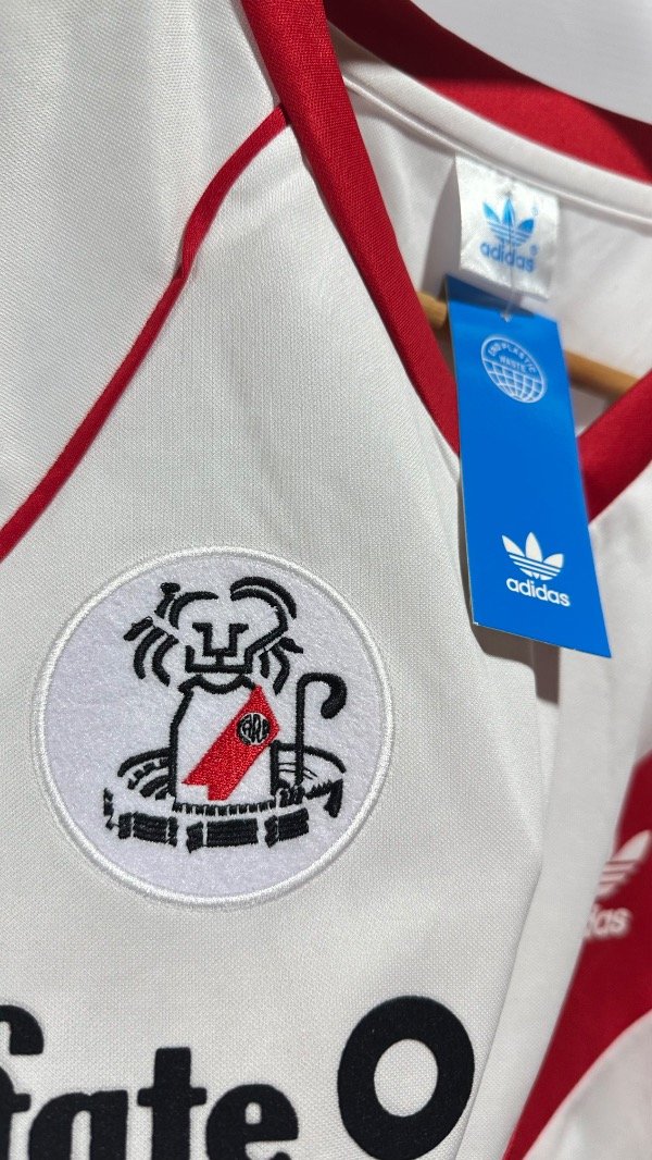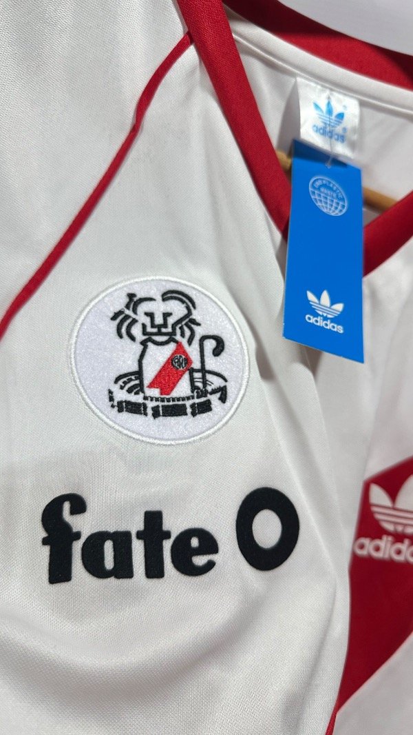 Camiseta de River Plate titular del Año 1986. Con escudo de River bordado y marca Adidas y parche Fate engamuzados en tela G5 importada. Con etiqueta Adidas con sus respectivos talles. Idéntica a la original.