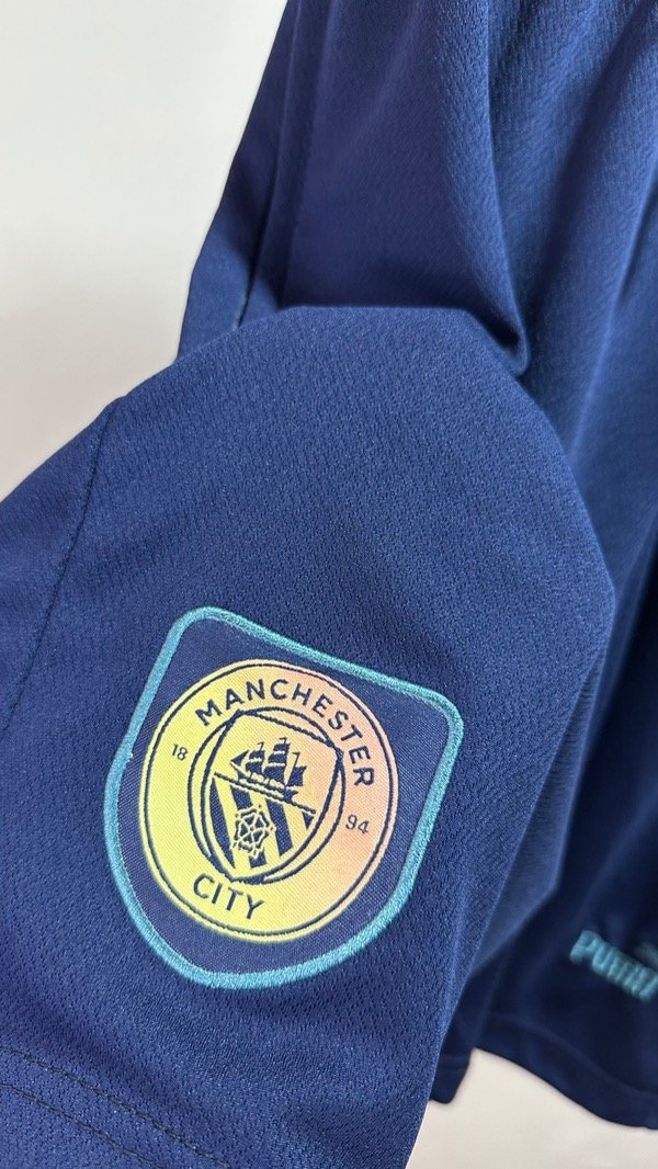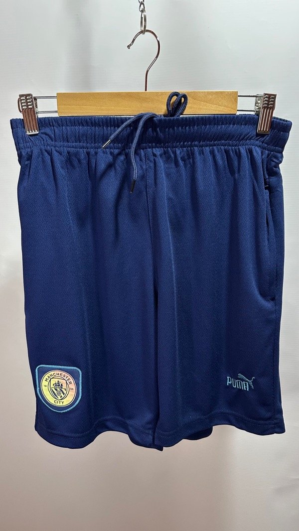 Short del Manchester City de Entrenamiento, temporada 2024/2025. Importado Puma. Con escudo Del City y marca Puma bordados de la mejor calidad. Con cordones ajustable a la cintura. Bolsillos con cierres rígidos. Ideal para conjunto con Camiseta Puma Manchester City ftblSTATEMENT.