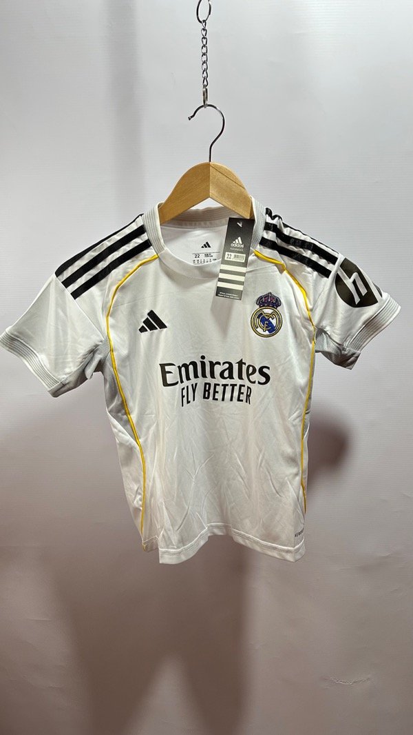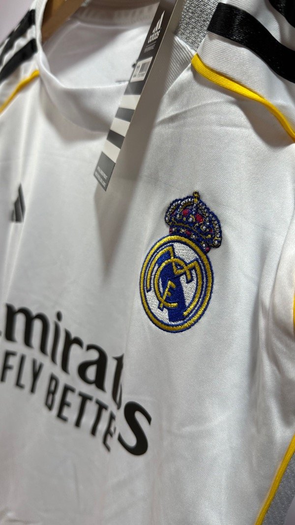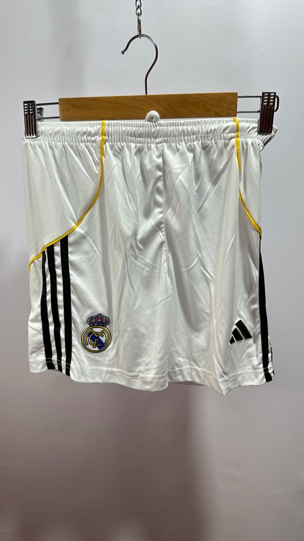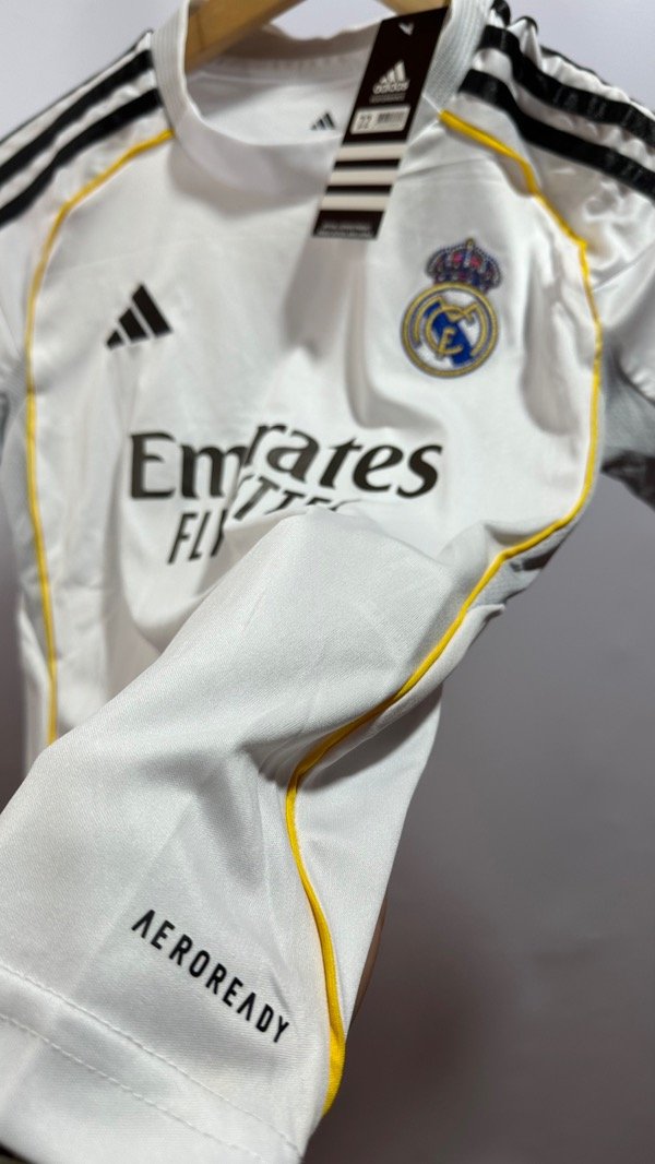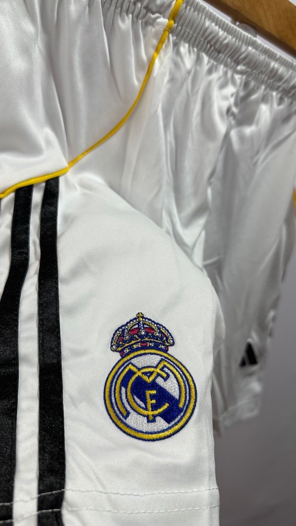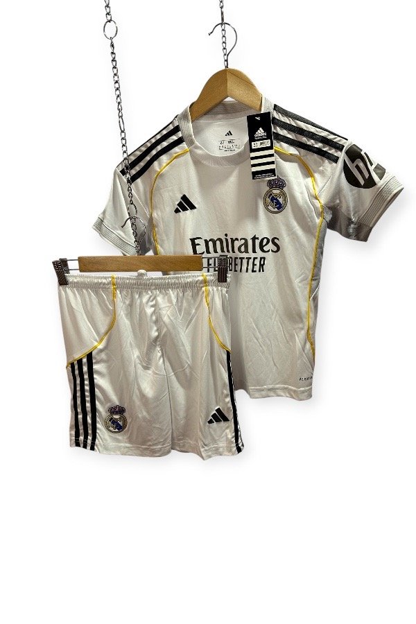 Conjunto del Real Madrid CF titular, temporada 2025/2026. Con escudo y marca Adidas bordados de la mejor calidad, prácticamente oficiales. Con etiqueta Adidas con su respectivo talle. Importado G5 Versión Fan.