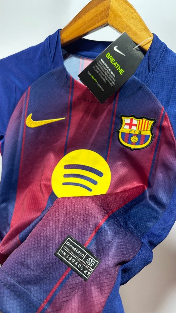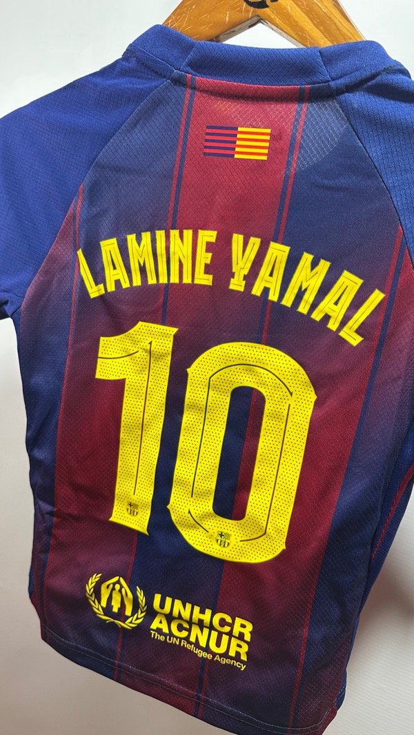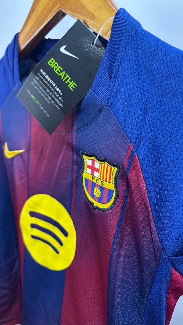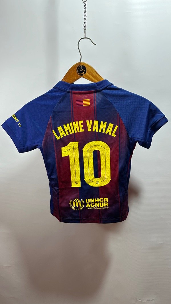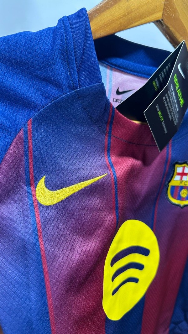 Camiseta del FC Barcelona Titular, temporada 2025/2026. Con escudo y marca Nike bordados de la mejor calidad, prácticamente oficiales. Con la número 10 en el dorsal de la Joya Lamine Yamal. Con etiqueta Adidas con su respectivo talle. Estampados termosellados. Importado G5 versión fan.