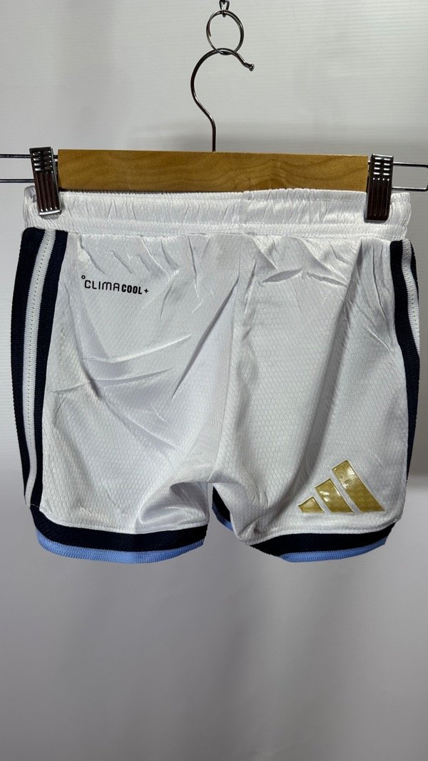 Short de la Selección Argentina Oficial 2026 Titular para niños. Con escudo de AFA y marca Adidas engomados y termosellados. Con el número 10 en el frente estampado en vinilo de Lionel Andres Messi. Corte y confección idéntico. Calidad Top Quality.