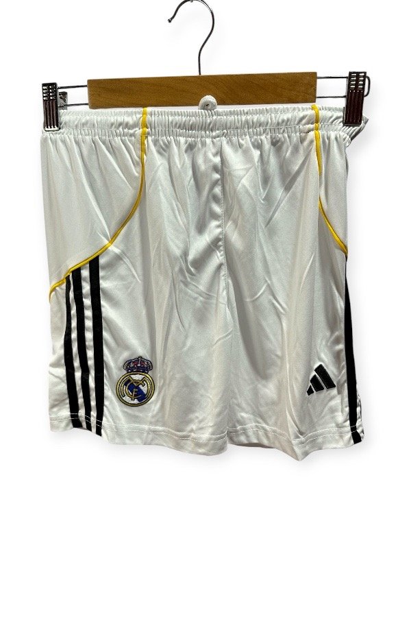 Short del Real Madrid CF titular. temporada 2025/2026. Con escudo y marca Adidas bordados de la mejor calidad, prácticamente oficiales. Con cordones ajustable a la cintura. Importado G5 versión fan.