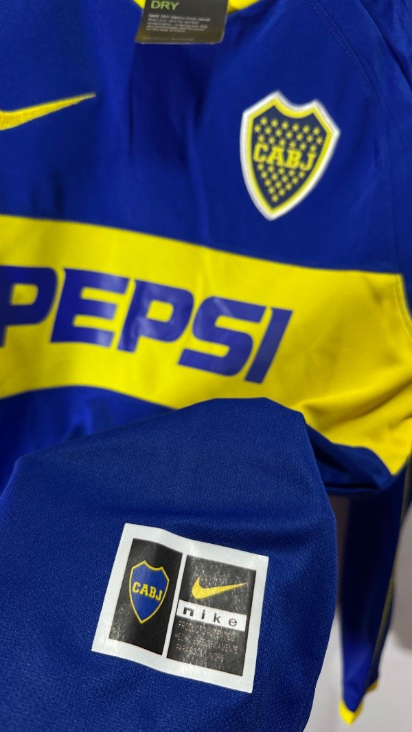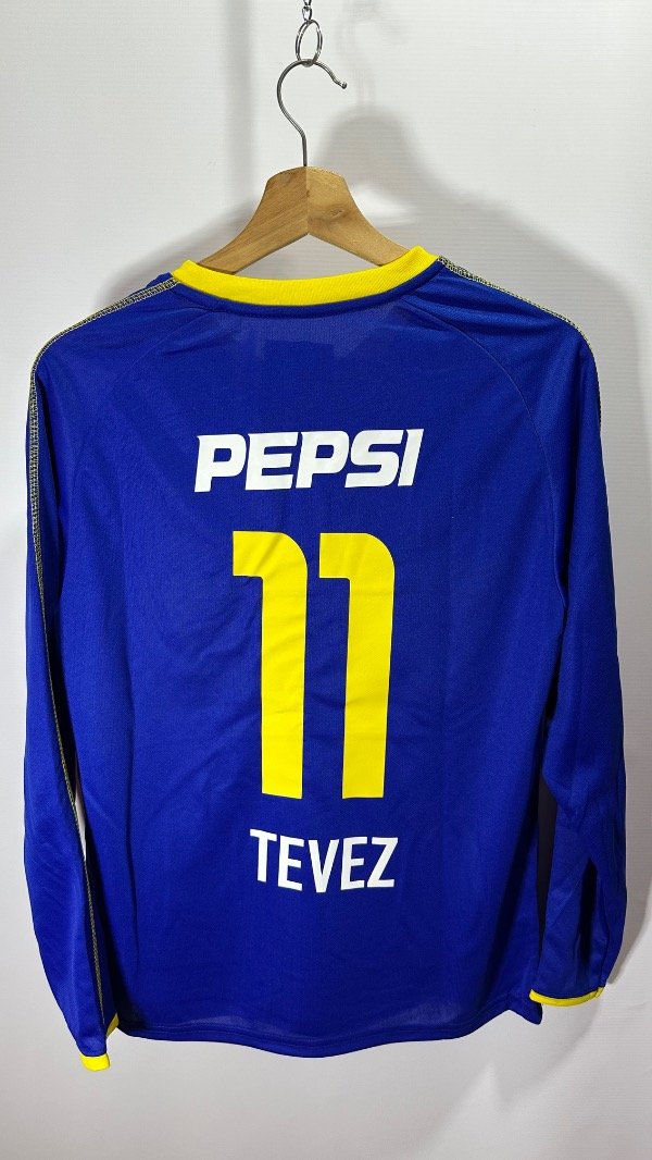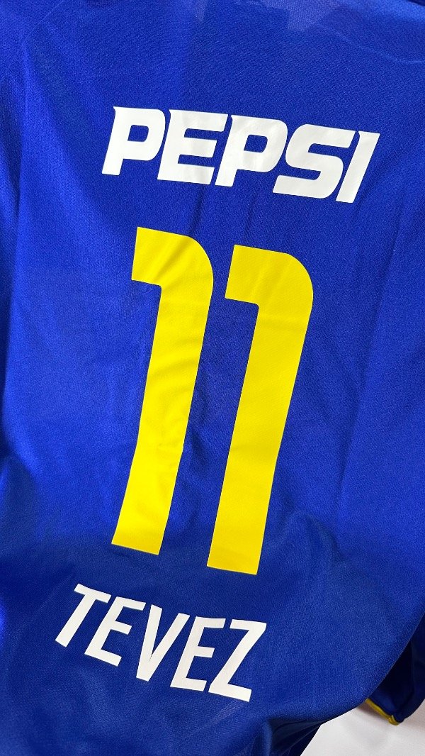 Camiseta de Boca Juniors del año 2003 titular manga larga. Con la número 11 en el dorsal de Carlos “El apache” Tevez . Con escudo y marca bordados . Estampados en vinilo. Corte y confección idéntico al original. Full premium.