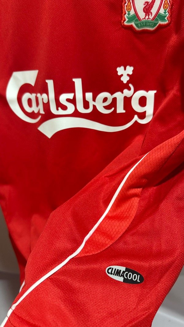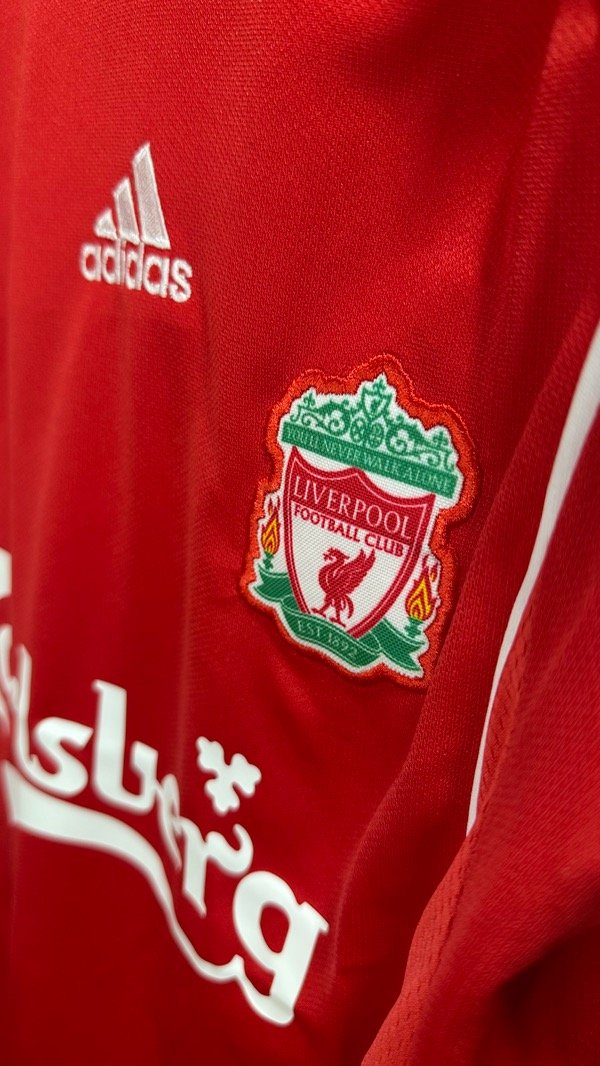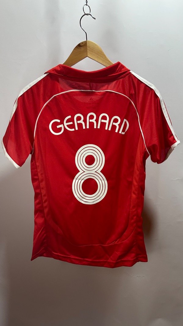 Camiseta del Liverpool FC Titular. Temporada 2006/2007. Con la número 8 en el dorsal del Inglés Steven Gerrard. Con escudo y marca bordados. Estampados en vinilo. Corte y confección idéntico al original.
