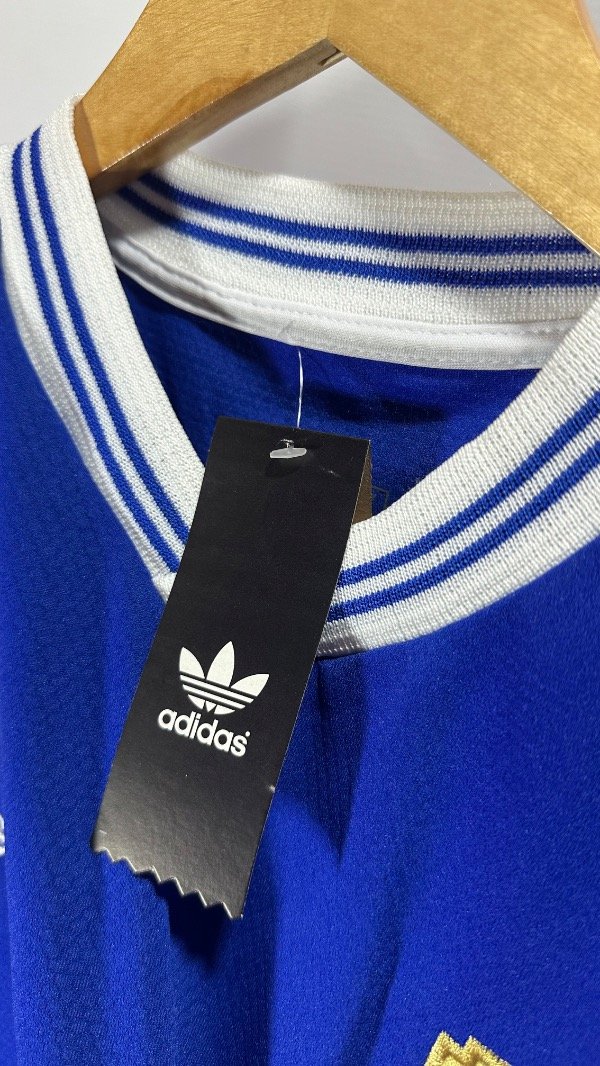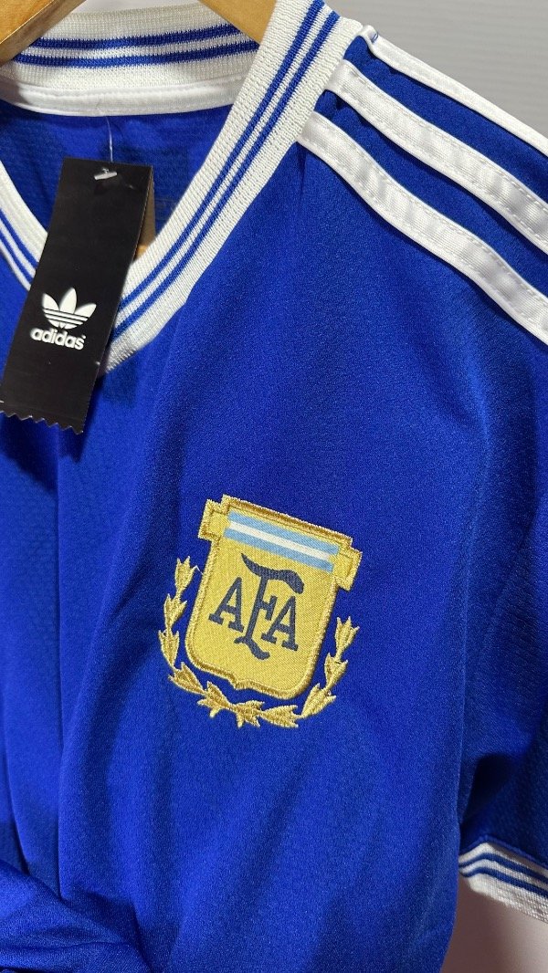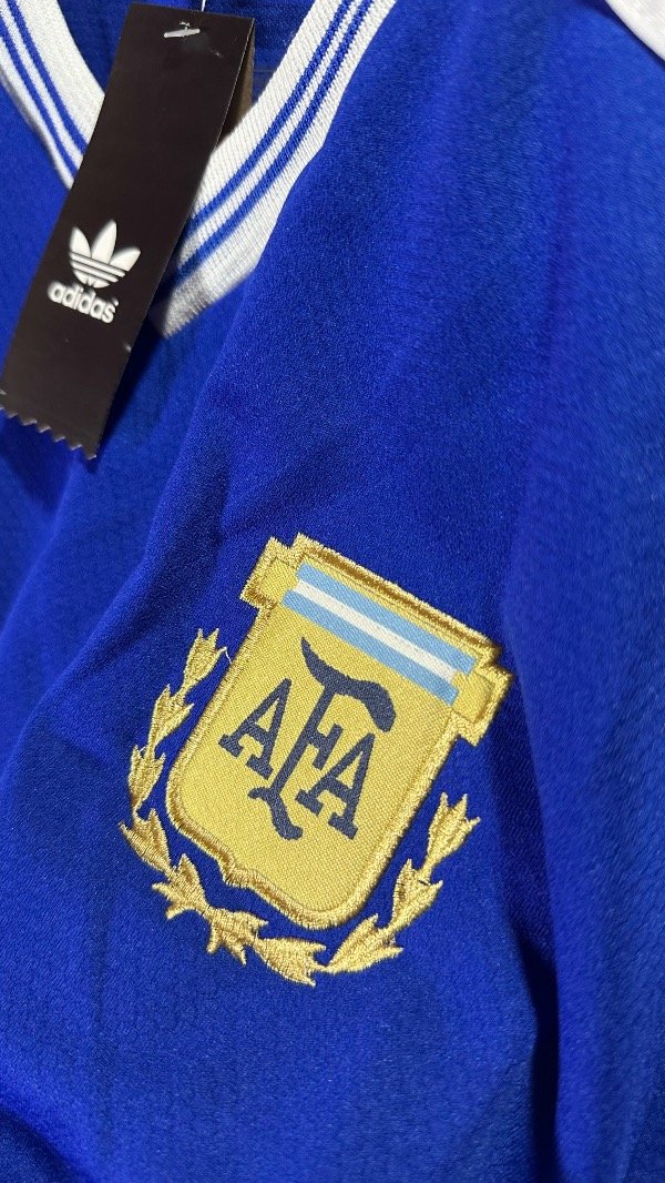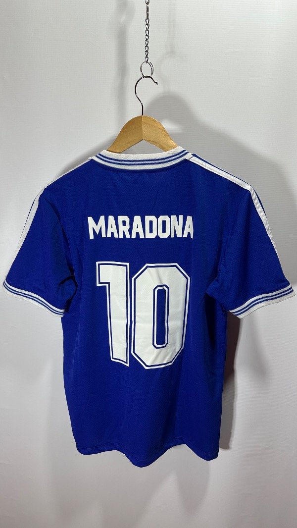 Camiseta de la Selección Argentina, año 1990, año del mundial disputado en Italia. Con la número 10 en el dorsal del Mejor de todos los tiempos, Diego Armando Maradona. Con escudo y marca bordados. Estampados en vinilo. Corte y confección idéntico al original. Full premium.