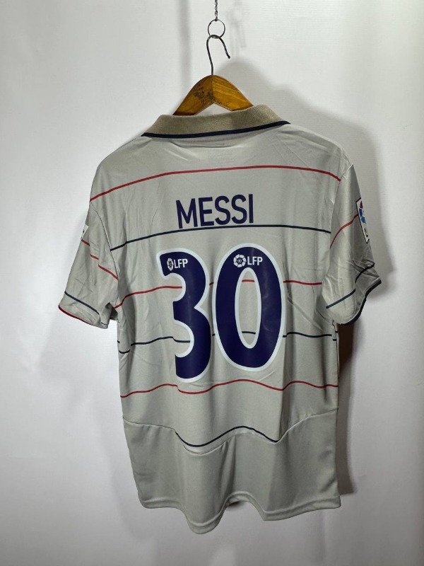Camiseta del FC Barcelona alternativa, temporada 2004/2005. Con la numero 30 en el dorsal del mejor del mundo , Lionel Andres Messi. Con escudo y marca bordados. Estampados en el vinilo. Corte y confeccion identico al original. Full premium.