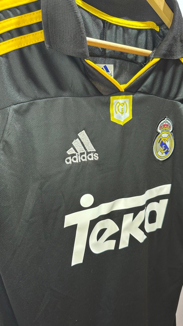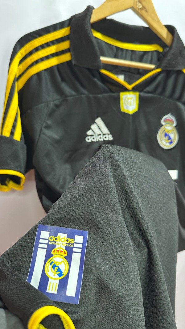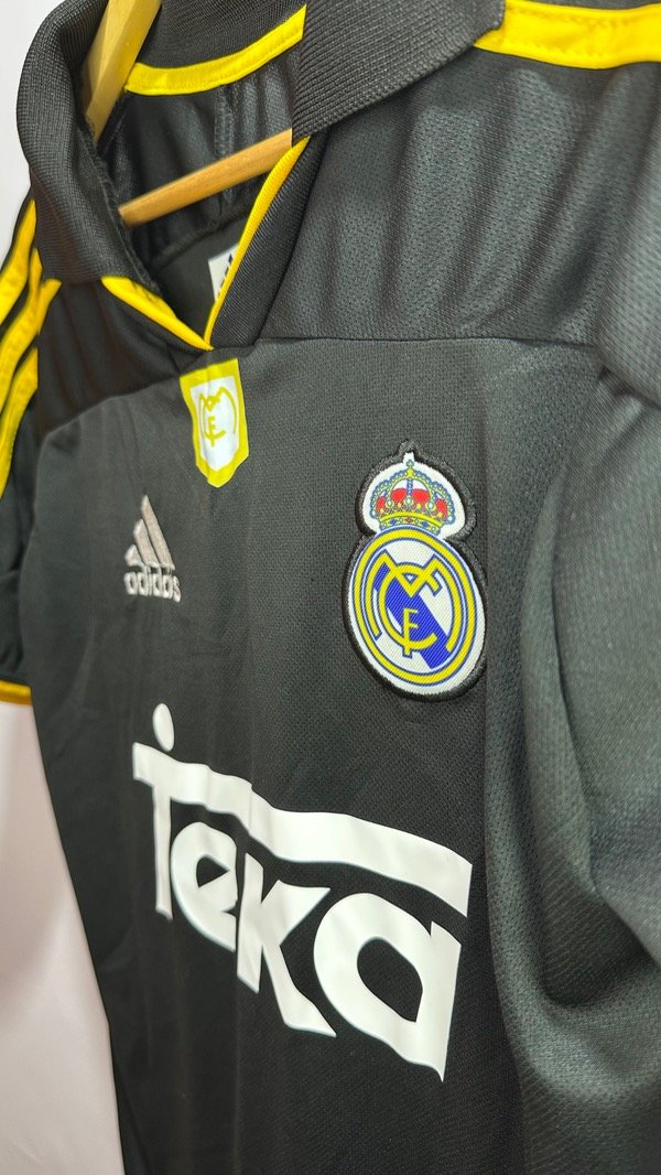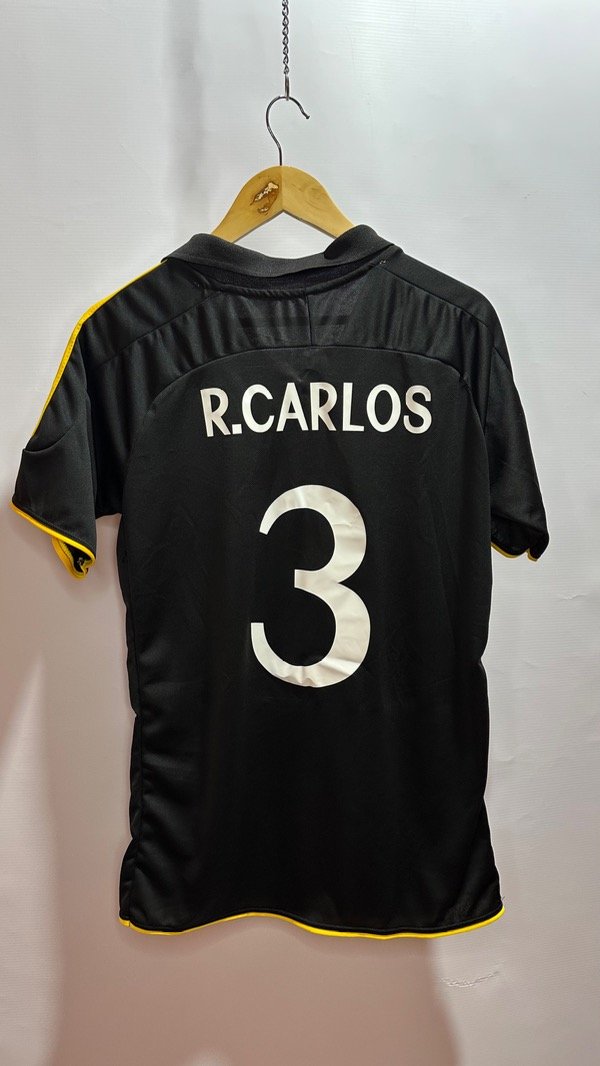 Camiseta del Real Madrid CF Alternativa , temporada 1999/2000 . Con la número “3” en el dorsal del lateral brasileño y astro “Roberto Carlos” . Con escudo y marca bordados de la mejor calidad. Estampados en vinilo. Corte y confección idéntico al original.