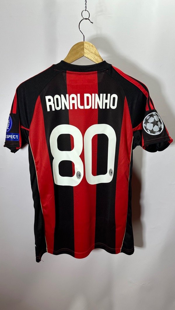 Camiseta del AC Milan Titular , temporada 2010/2011 , con la número “80” en el dorsal de Ronaldinho Gaucho. Con escudo y marca bordados . Estampados en vinilo. Corte y confección idéntico al original. Full premium.