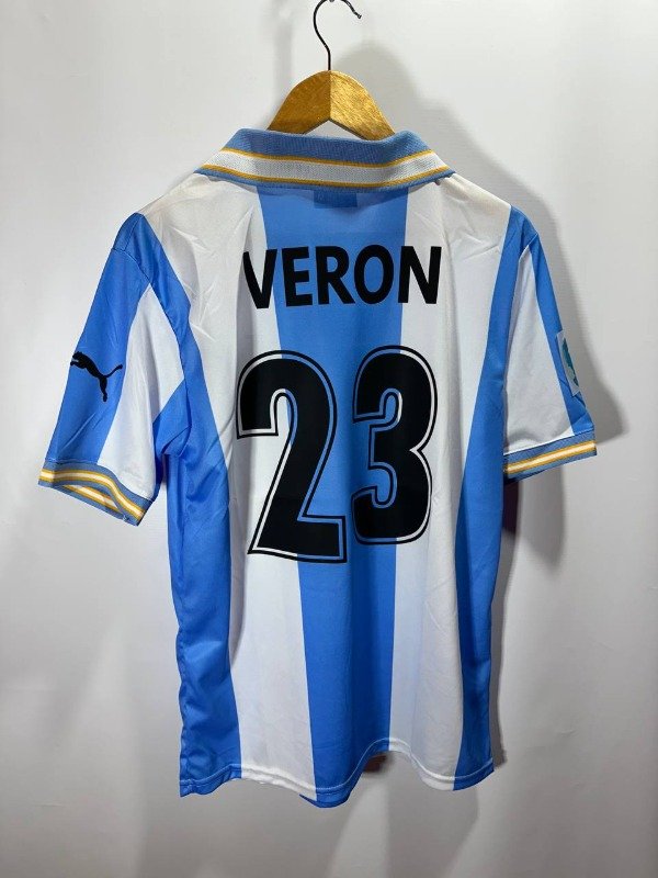 Camiseta de Lazio titular, temporada 1999/2000. Con la numero 23 en el dorsal de Juan Sebastian "la bruja" Veron. Con escudo y marca bordados. Estampados en vinilo. Corte y confeccion identico al original. Full premium.